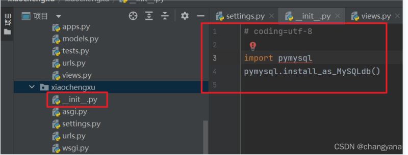 然后在settings.py同级目录的__init__.py文件中增加下面代码,导入mysql的配置