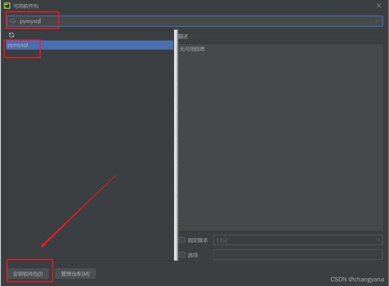 这时你会发现导入的pymysql有报错,这是因为我们还没有安装pymysql包,根据下图过程来进行pymysql的安装: