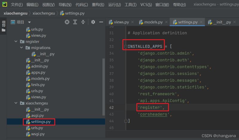 因为需要用到register这个app,再次确认一下此文件是否在settings注册过