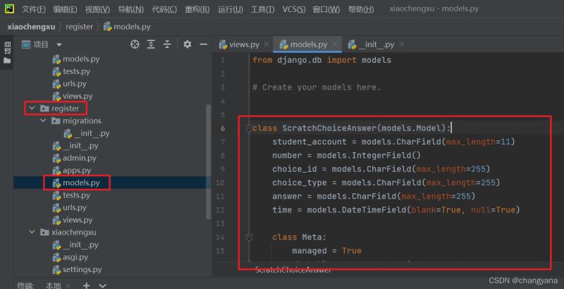 接着将需要用的表复制到你的程序需要使用的目录下。 如果基本上都会用到,那就复制整个文件,比如我的register只里需要用到scratch_choice_answer表里的信息,那么我就操作如下,只复制 class ScratchChoiceAnswer这部分的内容到需要的文件夹下就可以。