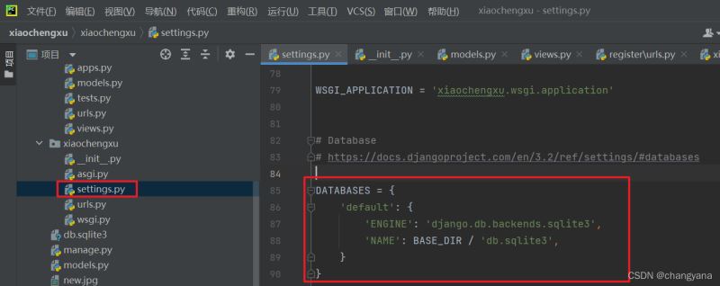 首先需要在项目的settings.py文件中配置mysql的连接信息:把之前配置的sqlite配置信息替换。