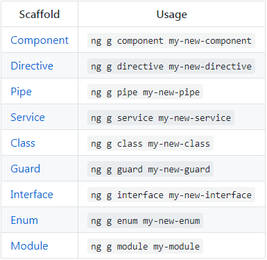 3.命令行的使用地址:https://github.com/angular/angular-cli/wiki 贴上官方提供的常用命令的图