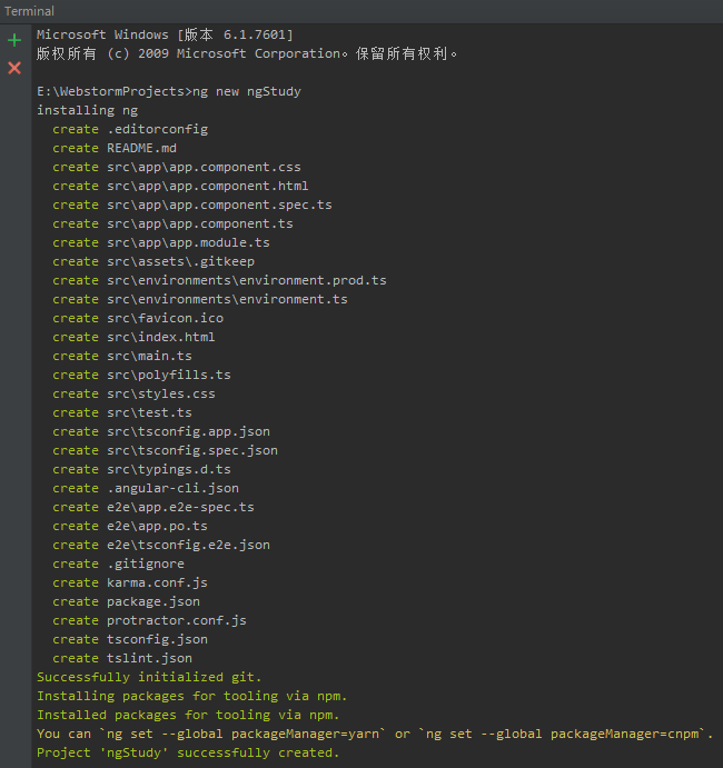 // ngStudy 是工程名称可以随意修改的 ng new ngStudy