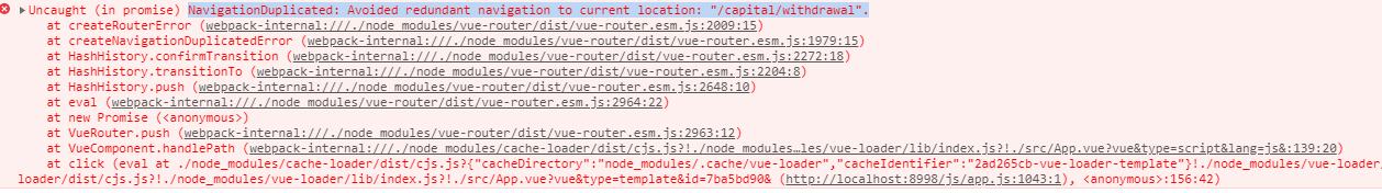 路由的push会向历史记录栈中添加一个记录,同时跳转同一个路由页面,会造成一个重复的添加,导致页面的报错