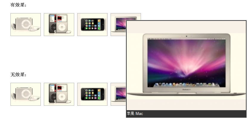 <li><a href="images/apple_4_bigger.jpg" class="tooltip" title="苹果 Mac"><img src="images/apple_4.jpg" alt="苹果 Mac"/></a></li>