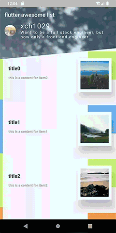 使用了flutter一段时间,越来越喜欢flutter了,flutter比我们想象中的强大。这篇文章介绍了怎么使用flutter来展示一个很漂亮的list,先看下效果图。