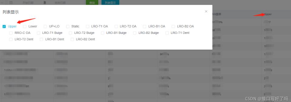 <el-table-column v-if="lists[0].ispass" label="Upper" prop="db28" show-overflow-tooltip ></el-table-column> <el-table-column v-if="lists[1].ispass" label="Lower" prop="db31" show-overflow-tooltip ></el-table-column> <el-table-column v-if="lists[2].ispass" label="UP LOW" prop="db34" show-overflow-tooltip ></el-table-column> <el-table-column v-if="lists[3].ispass" label="Static" prop="db36" key="1" show-overflow-tooltip ></el-table-column> <el-table-column v-if="lists[4].ispass" label="LRO-T1 OA" min-width="90px" prop="db44" key="2" show-overflow-tooltip > </el-table-column>