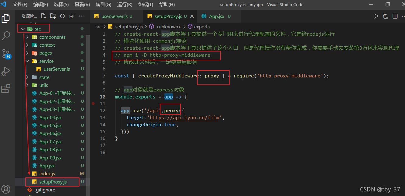 在配置在src/setupProxy.js文件,并通过npm安装http-proxy-middleware,代理中间件模块
