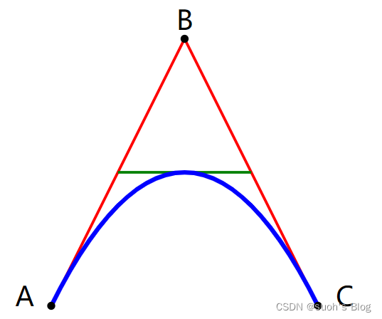 在data中我定义了svg的path路径变量例如: path_d: "M720,200 Q810,250,890,270" ,它代表的含义是:M后面的两个坐标是起点的xy值(下图A点),Q代表的是路径的控制点(也就是路径的曲度偏向,下图B点),最后两个坐标是重点的xy值(下图C点)