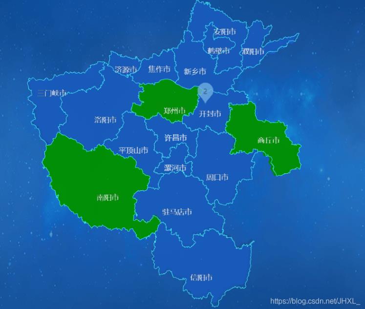 根据项目需求,我们要将下面省级地图中的个别市进行高亮(不同颜色)展示