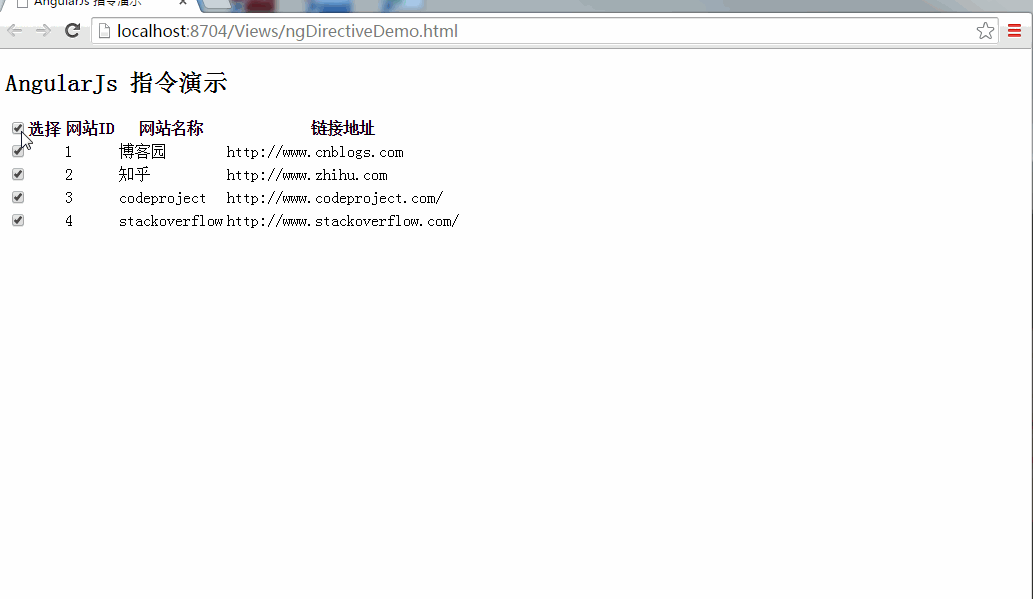 如果我们在程序中需要对DOM操作的话,我们可以使用指令来完成。下面让我们来看下一个全选复选框的自定义指令的实现: