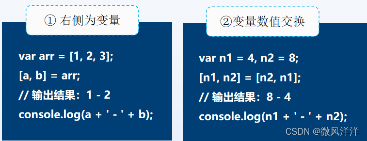 - 通过解构赋值完成两个变量数值的交换。