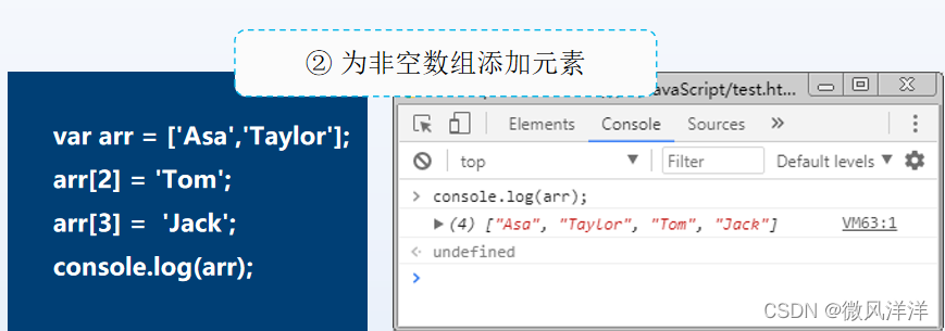 直接法“[]”与Array()对象的使用方式类似,只需将new Array()替换为[]即可。