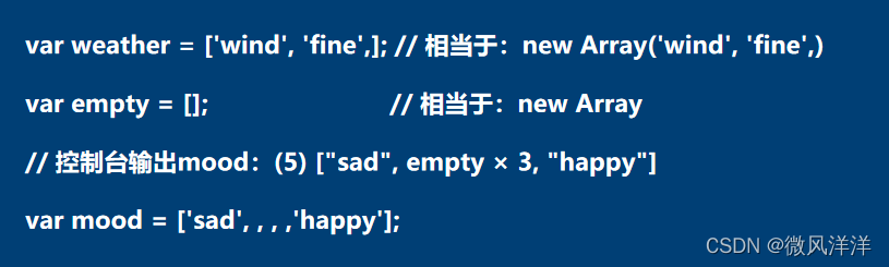 - 直接法“[]”与Array()对象在创建数组时的区别在于,前者可以创建含有空存储位置的数组,而后者不可以。
