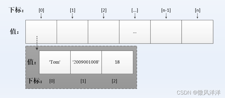 数组元素:每个数组元素由“下标”和“值”构成。