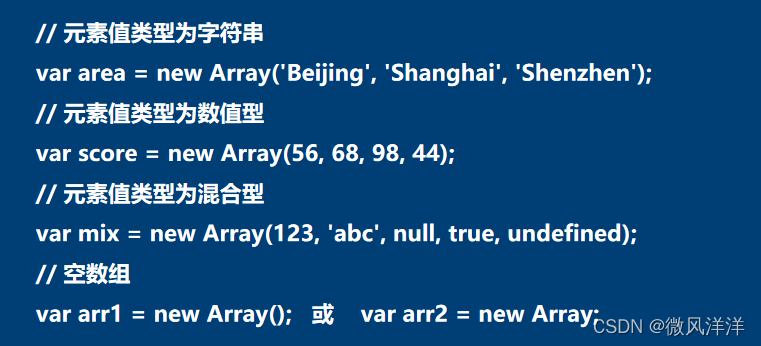 数组在JavaScript中的创建方式: