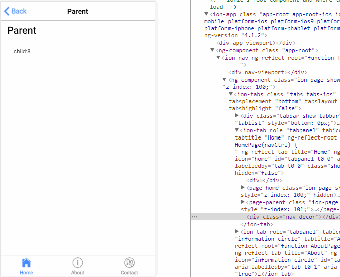<ion-header> <ion-navbar> <ion-title>Parent</ion-title> </ion-navbar> </ion-header> <ion-content padding> <h1>parent</h1> <page-child></page-child> </ion-content>