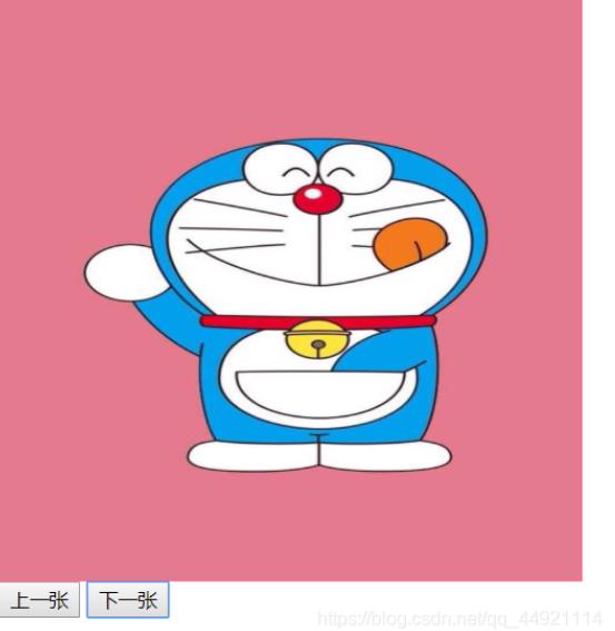 </html>实现效果为当点击下一张图片切换至数组中的下一张,点击上一张切换至数组中的下一张