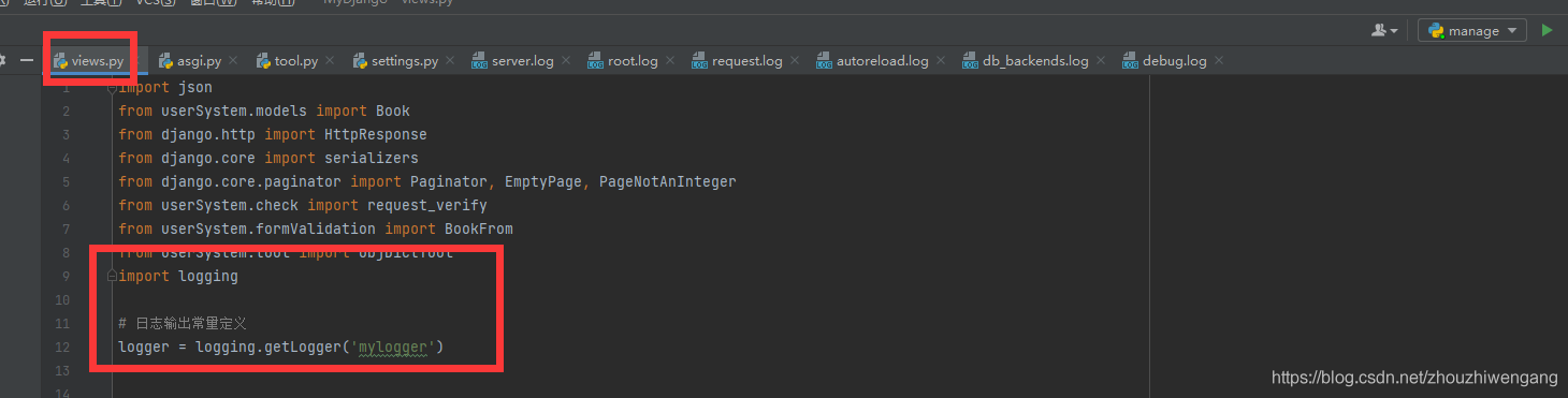 1、在应用的views.py 文件中添加logging 模块依赖,并在相关方法中输出相关日志记录