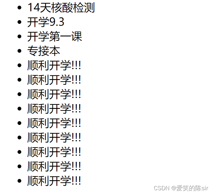 在实际运用开发时,我们的数据和内容不能写死,方便后续添加或修改内容,这样的话使用上面这种方法,你就发现这个方法效率很低,而且每次修改或者添加新的内容的时候都得添加一个<li></li>标签 ,这就很繁琐,而且效率也不怎么高,那么有没有一种效率高的方法来实现对应操作呢?事实证明它是有的。
