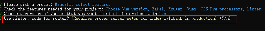 和你确认 路由器是否使用 history 模式?(Y:确认 / N:取消)