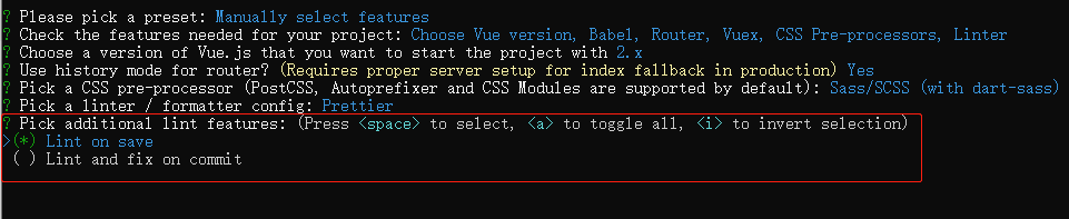 这里我们 选 Lint on save (保存时就触发)