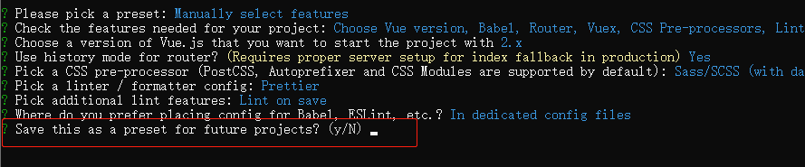 和你确认 是否把刚刚配置过的信息 保存为预设模板(保存为预设后,以后在创建项目时就可以选择这个预设模板进行创建)