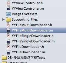 说明:本文介绍多线程断点下载。项目中使用了苹果自带的类,实现了同时开启多条线程下载一个较大的文件。因为实现过程较为复杂,所以下面贴出完整的代码。