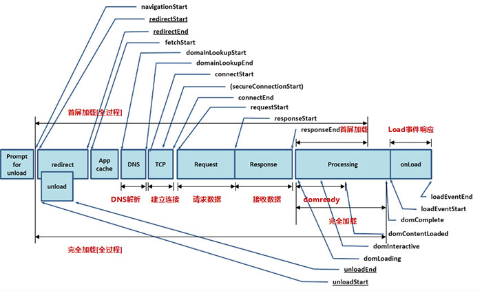 这对象内一连串的变量表示什么呢,它表示我们页面整个加载过程中每一个重要的时间点,可以详细看看这张图:
