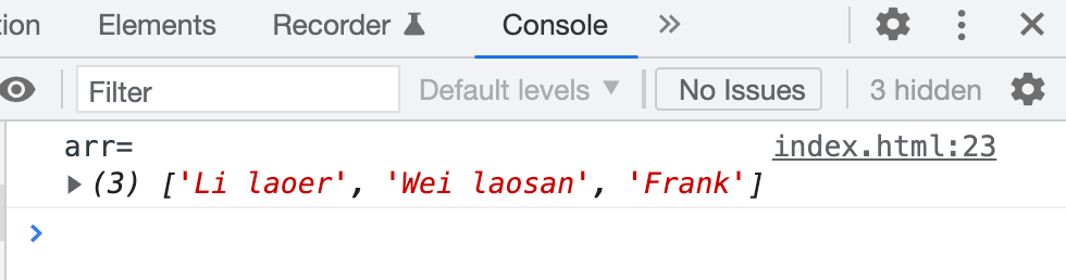 console.log('arr=', arr); // ['Liu laoda', 'Li laoer', 'Wei laosan', 'Frank']