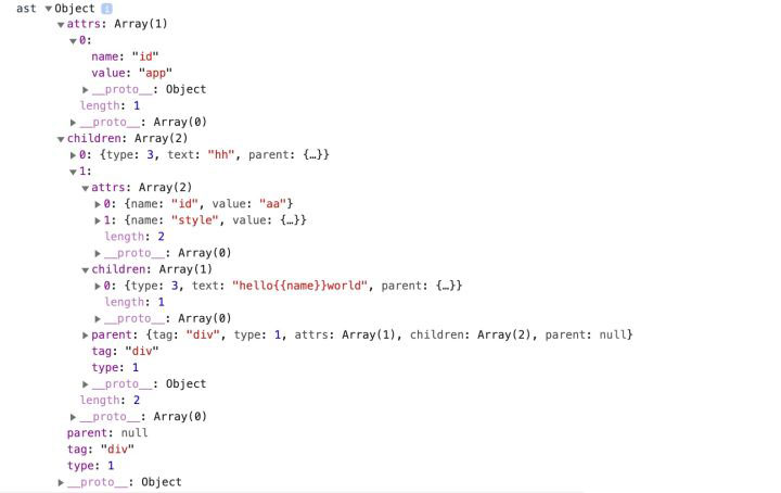 当拿到对应的html字符串后,需要通过正则来将其解析为ast抽象语法树。简单来说就是将html处理为一个树形结构,可以很好的表示每个节点的父子关系。