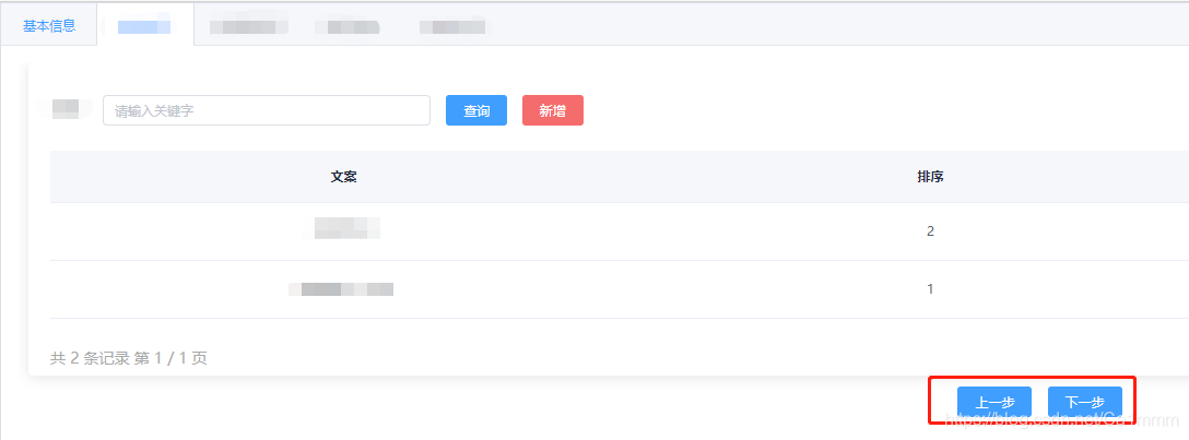 使用Element的Tabs组件嵌入多页面,但是页面中需要实现上一步、下一步功能,如图: