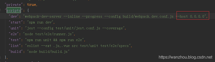 "dev": "webpack-dev-server --inline --host 0.0.0.0 --progress --config build/webpack.dev.conf.js",