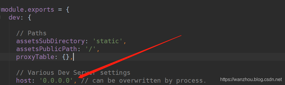 第一步:修改config文件中找到 index.js 文件的host改成 ‘0.0.0.0’