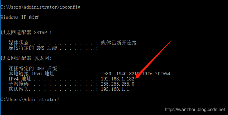 这个ip也可以设置成你的局域网ip,例如:192.168.1.182