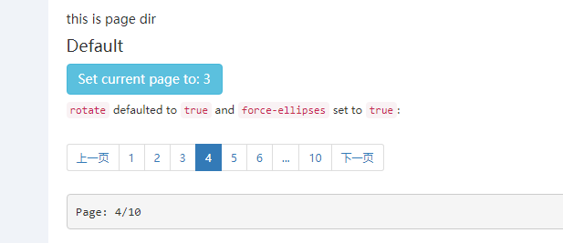 <uib-pagination class="pagination-sm" 分页函数="" ng-change="pageChanged()" 是否将当前页显示在中间="" rotate="true" 是否显示首页,和末页的数字="" boundary-link-numbers="true" 是否显示“.....”这几个点="" force-ellipses="true" 显示页码的页码tabs数量(不包含首页,末页)="" max-size="maxSize" 当前页="" ng-model="bigCurrentPage" 每页显示的数据条数="" ="" items-per-page="pageSize" 总的数据记录数="" total-items="bigTotalItems" =""> </uib-pagination>