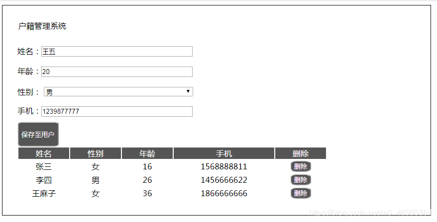户籍管理系统,v-model,v-for的引用
