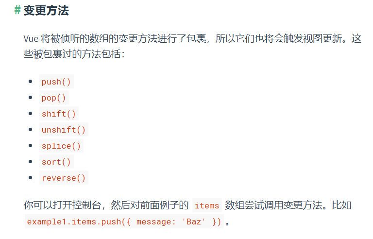Vue对这些JS数组方法进行了封装,通过这些方法是可以检测到数组更新的。