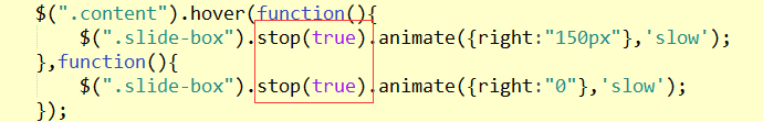 $(".slide-box").stop(true).animate({right:"150px"},'slow');