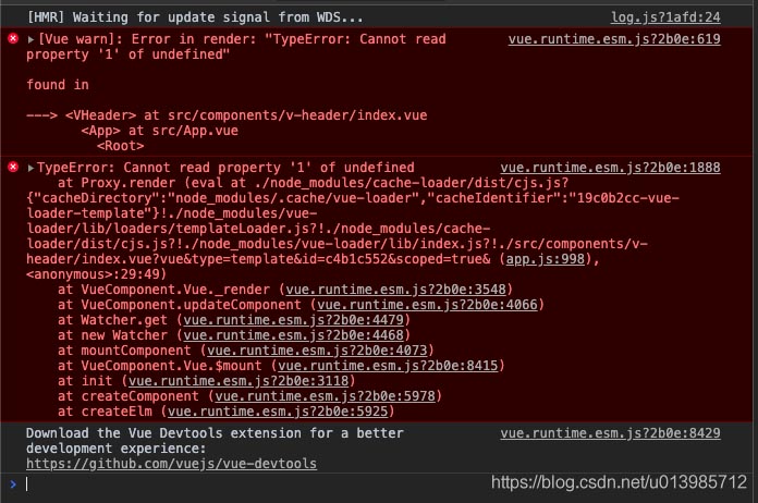 [Vue warn]: Error in render: “TypeError: Cannot read property ‘1’ of undefined”
