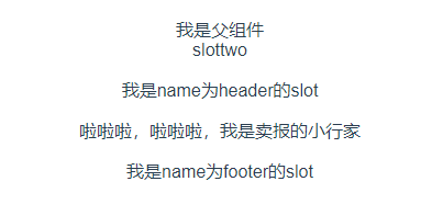 </template>在子组件中定义了三个slot标签,其中有两个分别添加了name属性header和footer