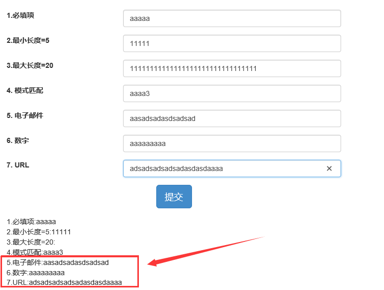 下面我们将这些表单验证放到具体的实现中来测试一下: