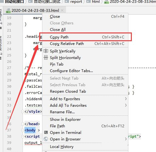 common.Common().GetHtmlResult(suite,'登录测试用例')<5> copy当前要执行的脚本路径,添加到运行方式为python里
