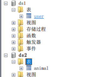 分别在 ds1和 ds2库中添加 user 表