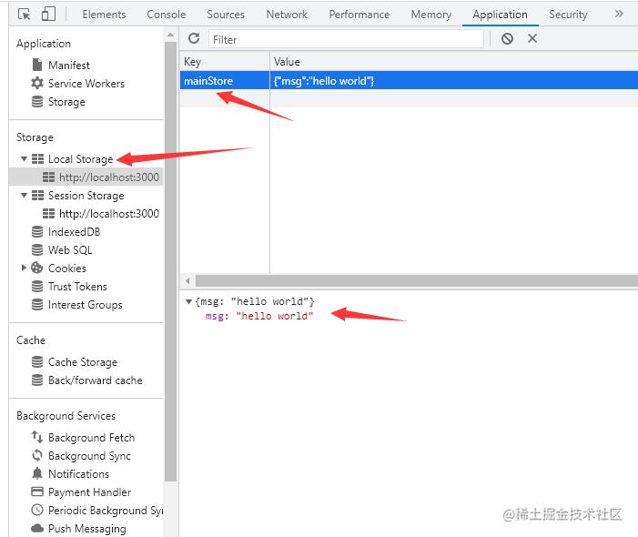 数据默认是存在sessionStorage中的,还会以store的名称作为key。但是我们可以对其修改,并且还可以只持久化部分state中的属性,代码如下: