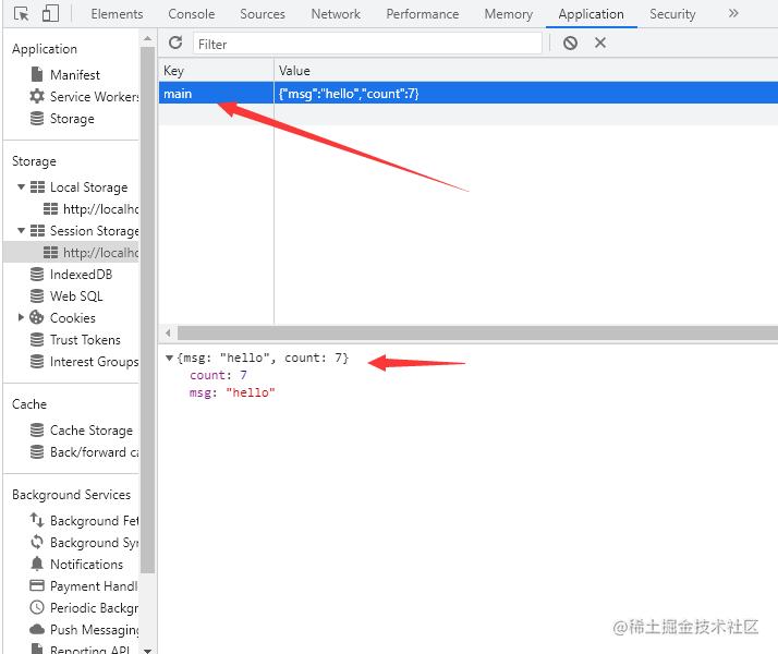 })更新数据以后,我们就能在浏览器控制台中看到已经将数据存储到了sessionStorage中