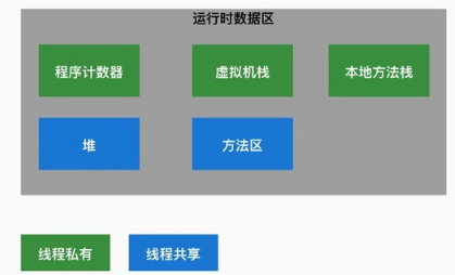 - 程序计数器是线程私有的。cpu通过轮流分配时间片来执行线程,为了线程切换后能恢复到正确的执行位置,显然每个线程都需要有一个独立的程序计数器。
