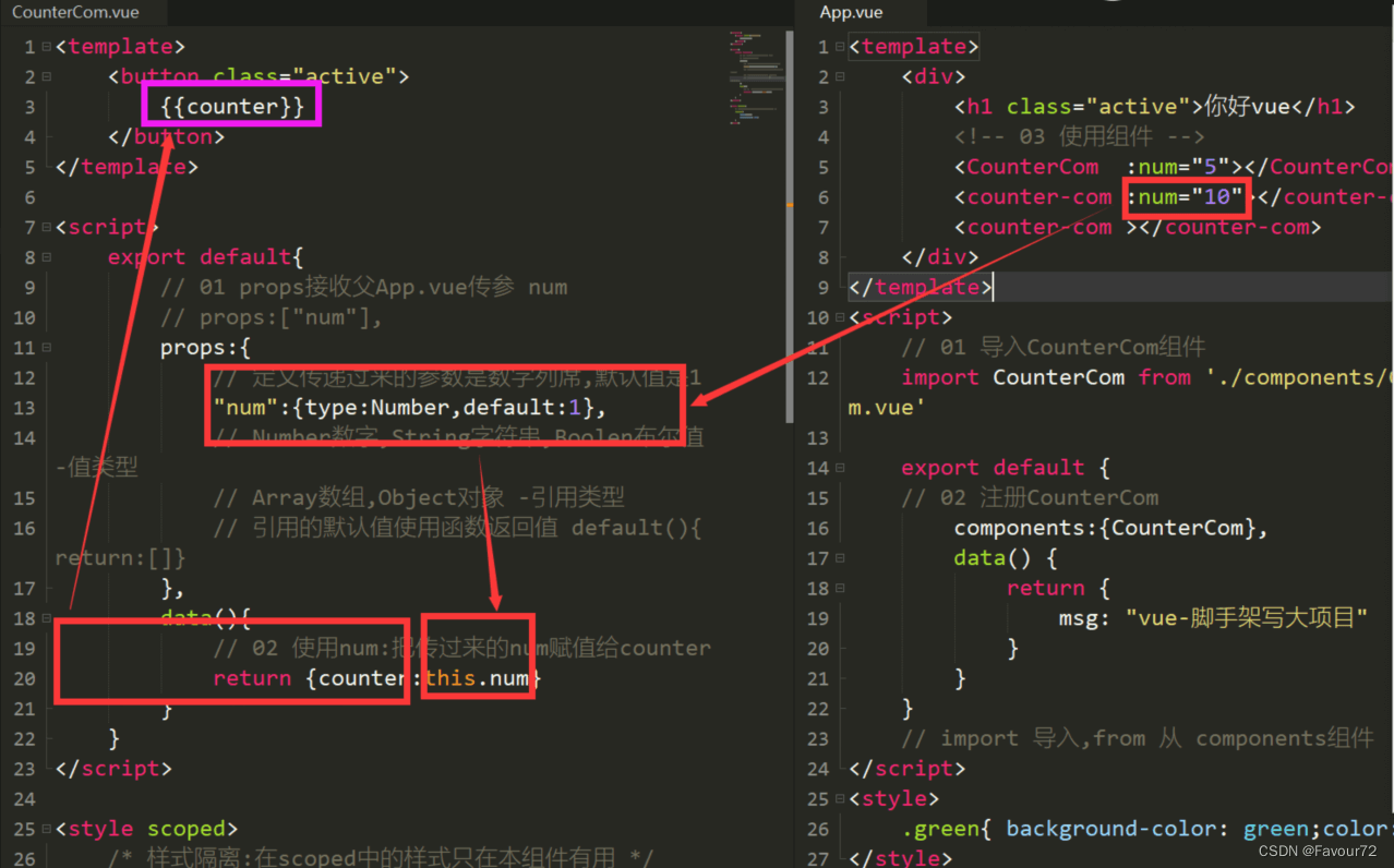 第一步:在 components 目录新建你的组件文件(CounterCom.vue),script一定要export default {}