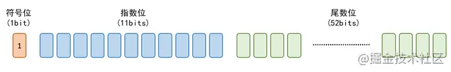 - 第一位表示符号,后 111111 位表示指数,指数按照补位运算,即直接 102310231023 加指数位