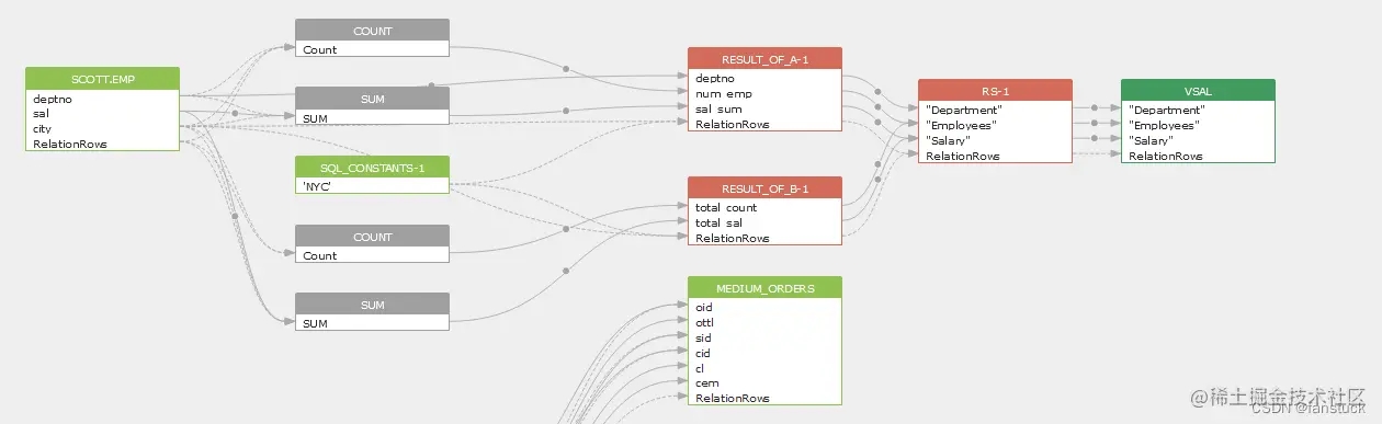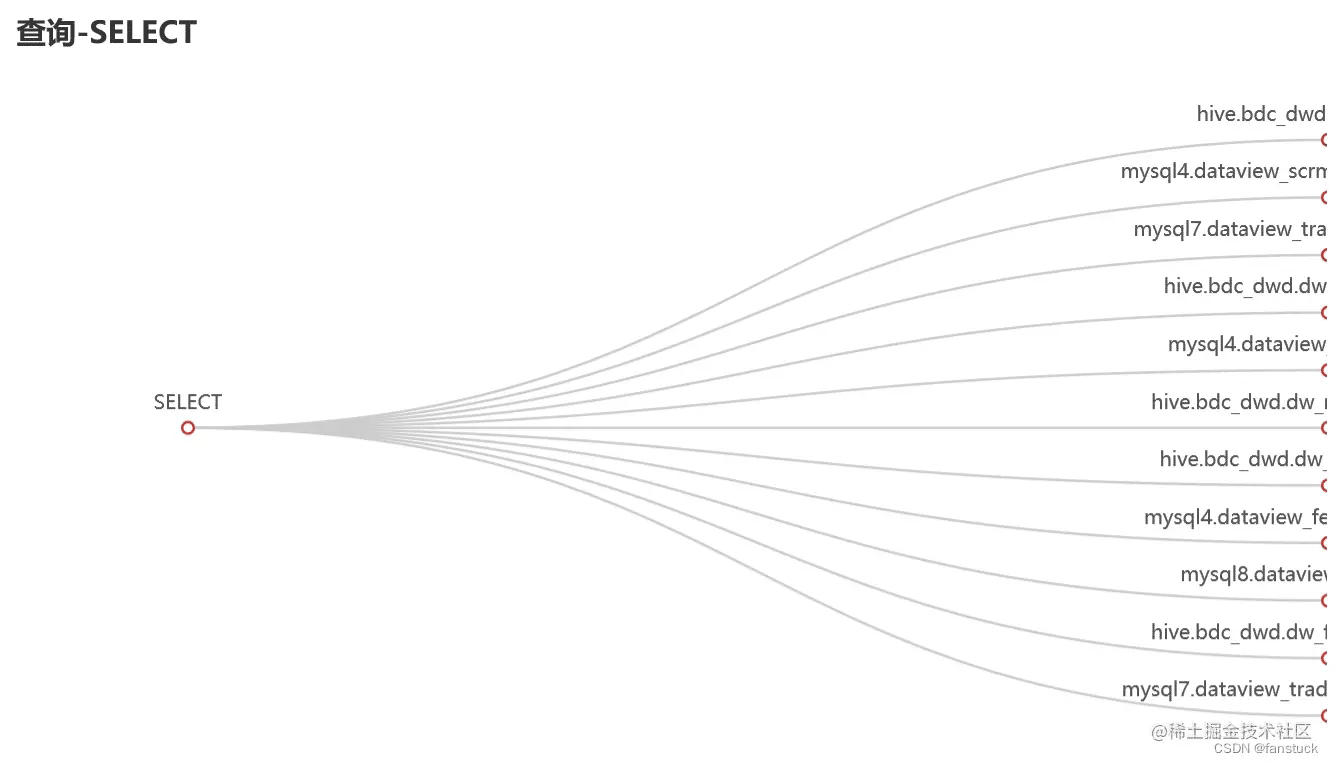 当第一次看到此图我就决定血缘追踪就应该是这个样子,能够清晰的解析出每个字段和表之间的血缘关系。以此我们设定输出的基准,我们要做的项目目标就是如此。